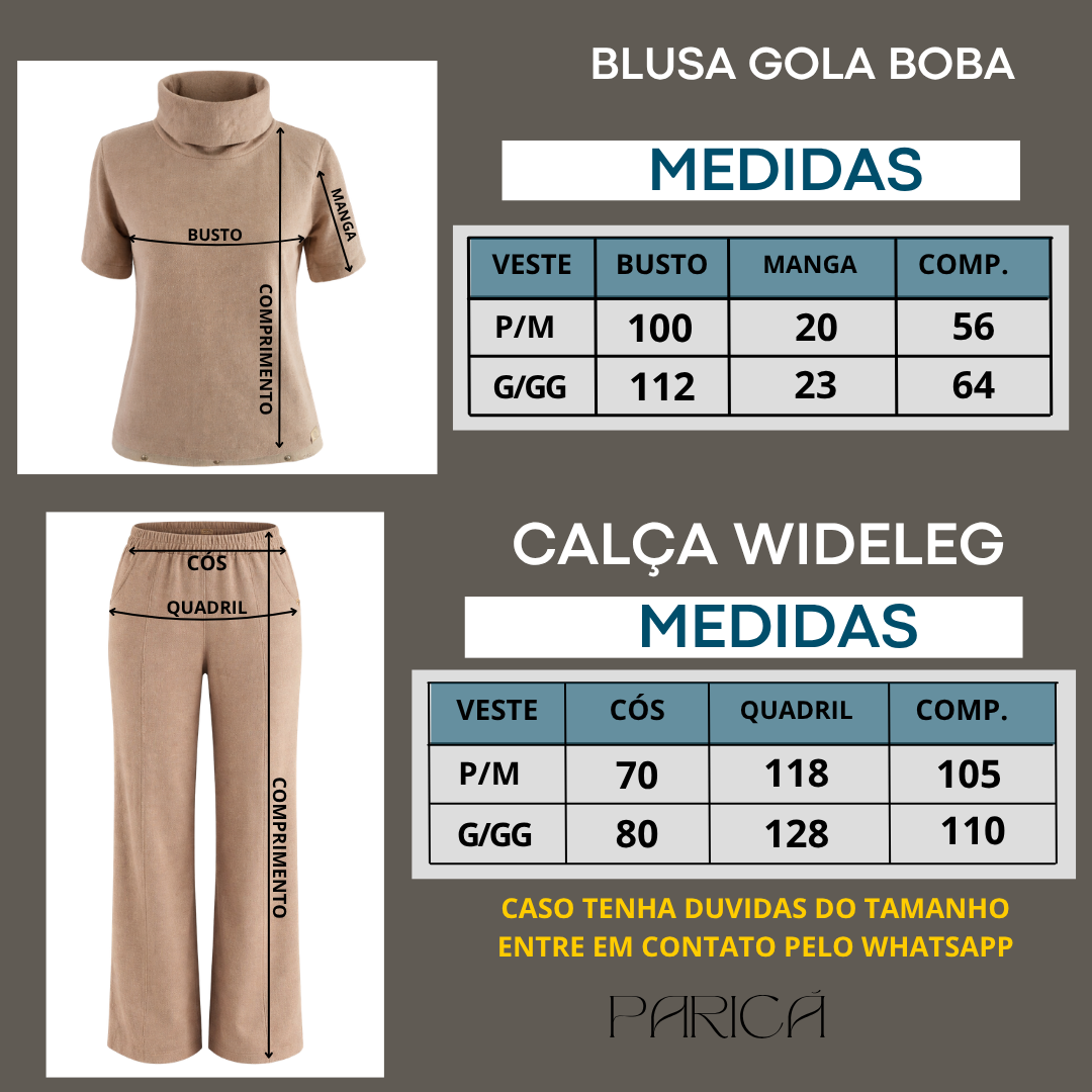 A calça no estilo wide leg garante um caimento impecável, alongando a silhueta e proporcionando liberdade nos movimentos. O destaque fica por conta do recorte frontal (friso), que traz um acabamento mais elegante e moderno ao look.